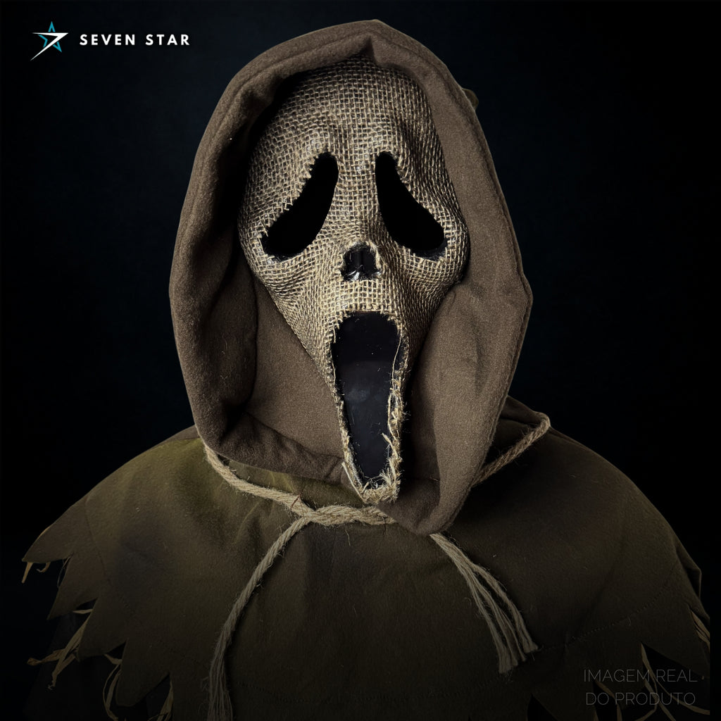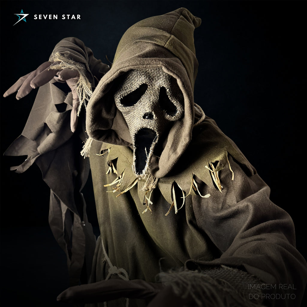 A maioria dos cosplays de Ghostface segue o visual clássico, mas poucos conhecem essa versão Scarecrow, que mistura terror rural com a identidade mais icônica do cinema.