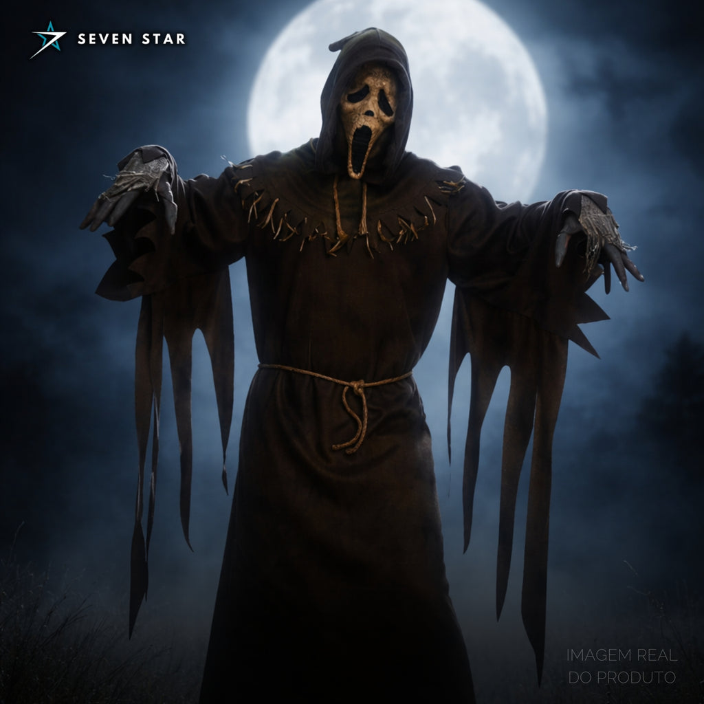 Esse traje entrega presença imediata, visual perturbador e uma estética mais sombria e diferenciada dentro do universo Ghostface.