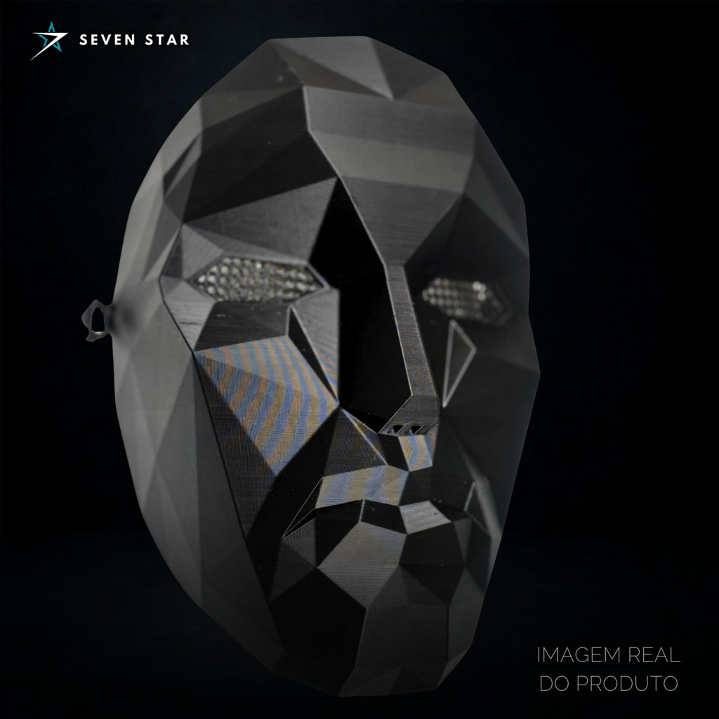 Entre no universo de Round 6 com a máscara mais marcante da série: a do Front Man. Misteriosa, imponente e com um design geométrico futurista, essa peça não é apenas um acessório — é uma declaração de presença.