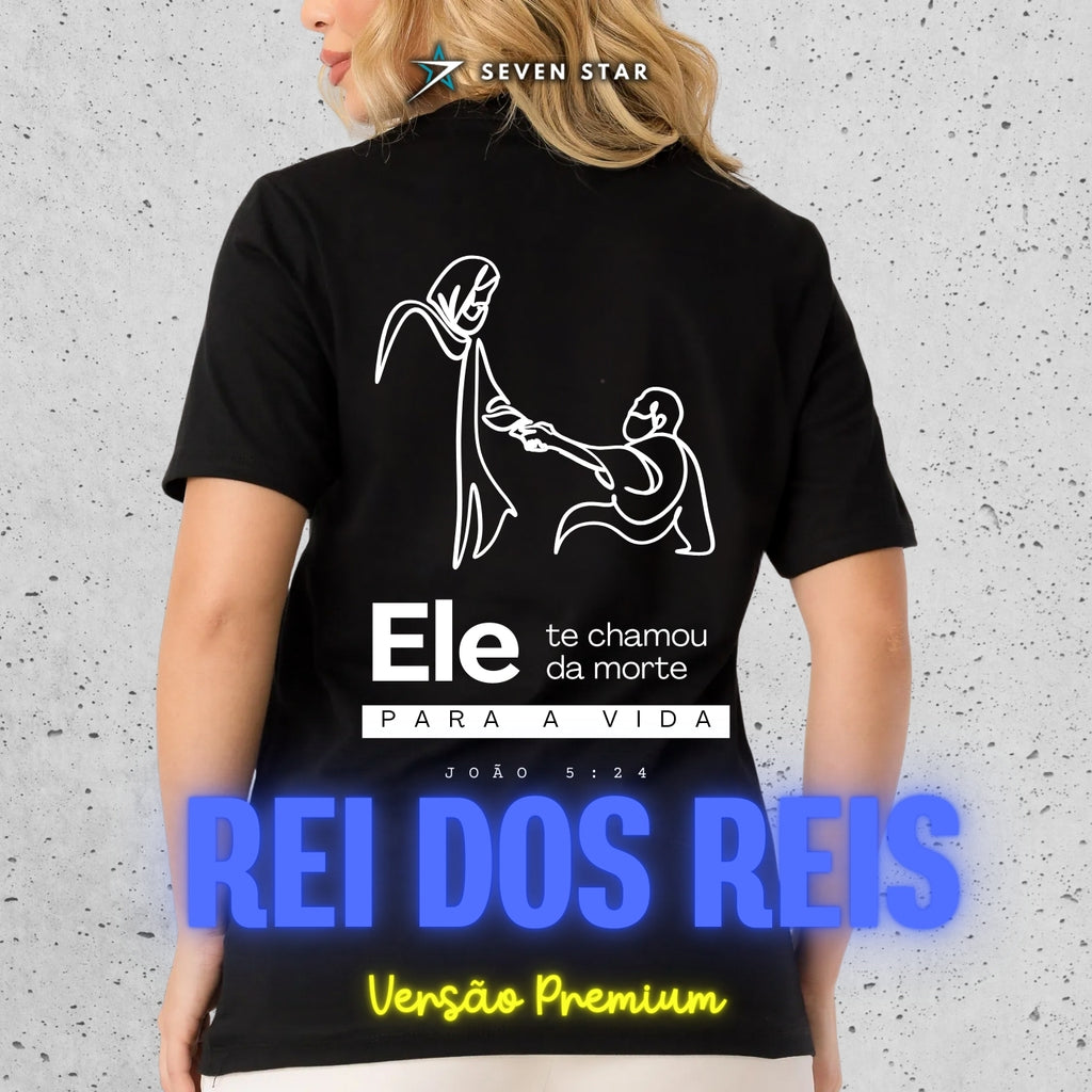 A T-shirt "Ele te chamou da morte para a vida" é mais do que estilo — é um testemunho. Inspirada em João 5:24, ela declara com ousadia a vitória de Cristo sobre a morte e a nova vida que temos Nele.
